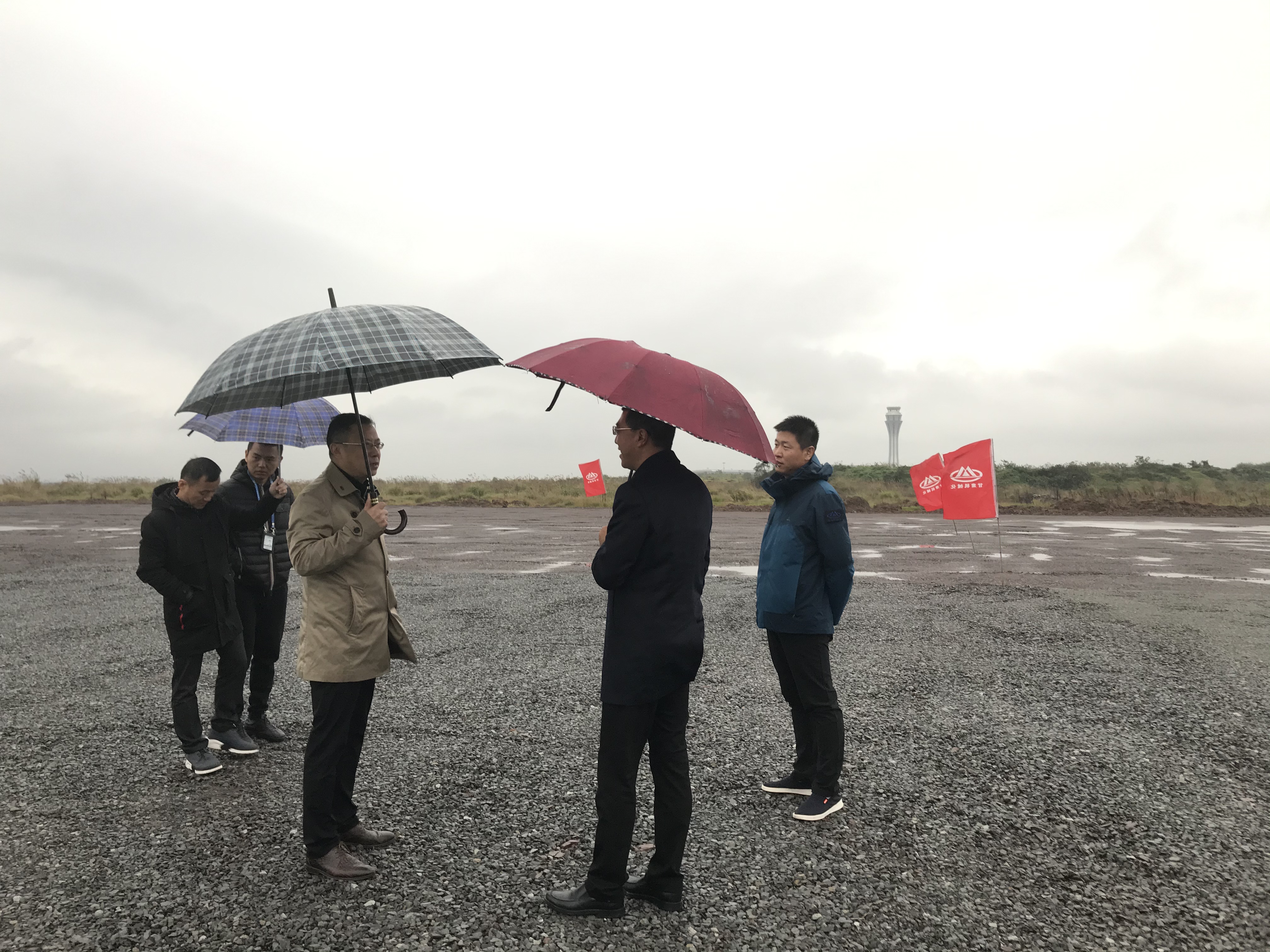 11月24日下午,伴隨著綿綿細(xì)雨,董事長陳想蕃應(yīng)重慶機(jī)場集團(tuán)有限公司副總經(jīng)理、重慶江北機(jī)場擴(kuò)建工程指揮長張明進(jìn)相約,在相關(guān)負(fù)責(zé)人的陪同下,對我司承建的重慶江北國際機(jī)場凈空應(yīng)急處置建設(shè)工程進(jìn)行實地查看。