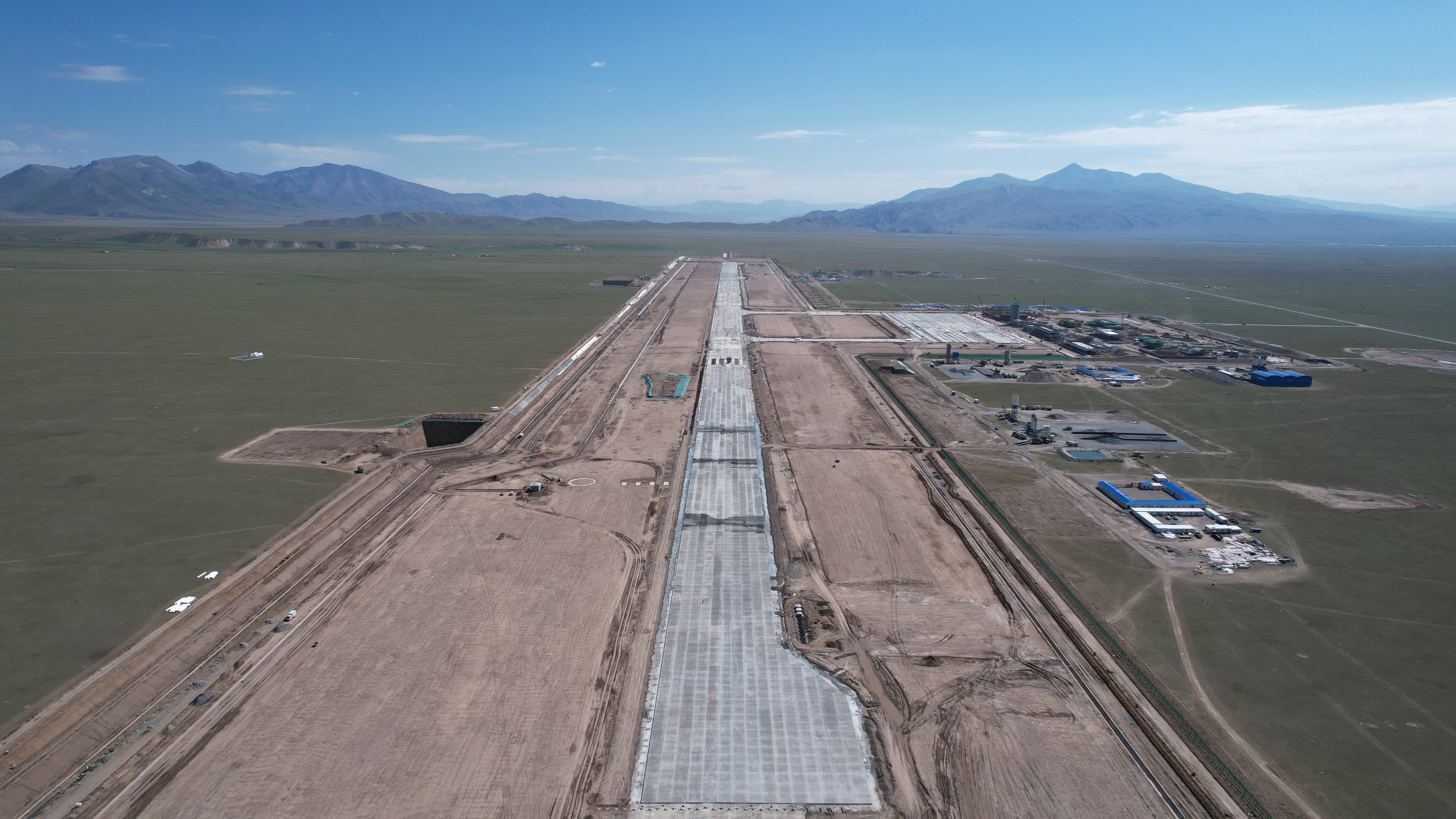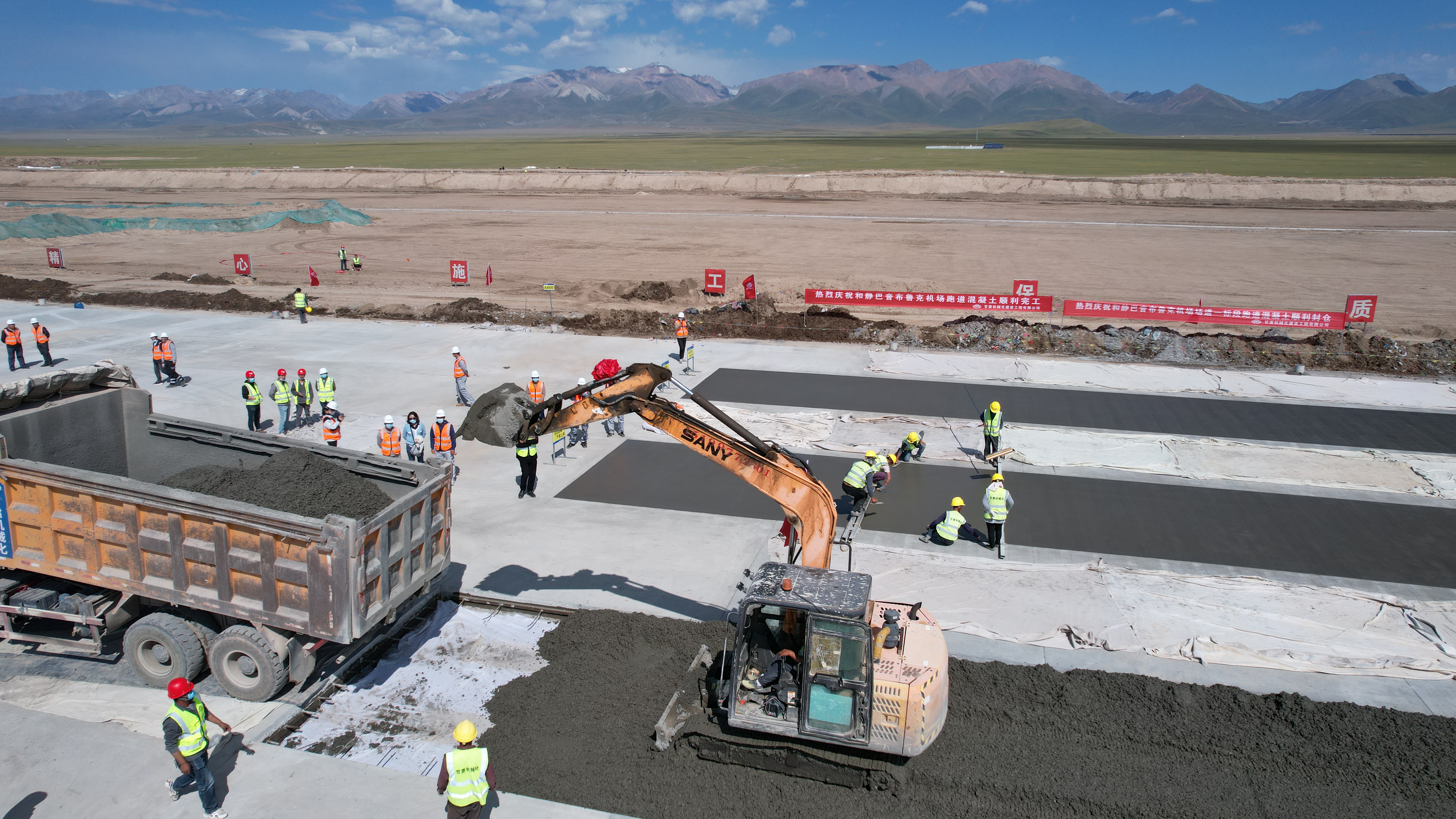8月18日,隨著現(xiàn)場(chǎng)最后一車混凝土緩緩倒入倉(cāng)內(nèi),我公司承建的新疆和靜巴音布魯克機(jī)場(chǎng)跑道全線貫通。